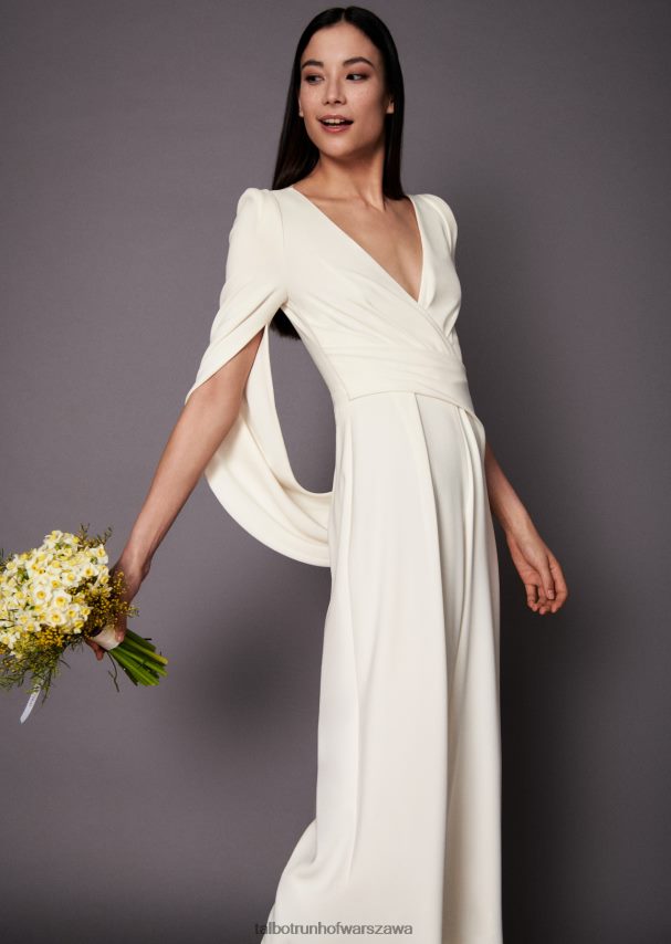 nasz kombinezon silva2 to pięknie nieskomplikowana i jednocześnie elegancka kreacja na ślub rejestracyjny. nowoczesna długość midi i szeroka nogawka nadają kobiecy i elegancki, królewski wygląd. do tego krzyżujący się dekolt w kształcie litery V wspaniale podkreśla piękny dekolt. rękaw nieskończoności stanowi skromnie elegancki akcent. ale to nie koniec, ponieważ najbardziej ekscytujący szczegół ujawnia się po zakręceniu: tył wykonany z delikatnej francuskiej koronki chantilly staje się widoczny. lamówka z naszytych guzików oddaje hołd dniom klasycznej mody ślubnej, ale we współczesnym kontekście. załóż ją do metalicznych sandałów, aby uzyskać nieskończenie długie nogi i powiedz „tak” tej niezwykłej stylizacji!
