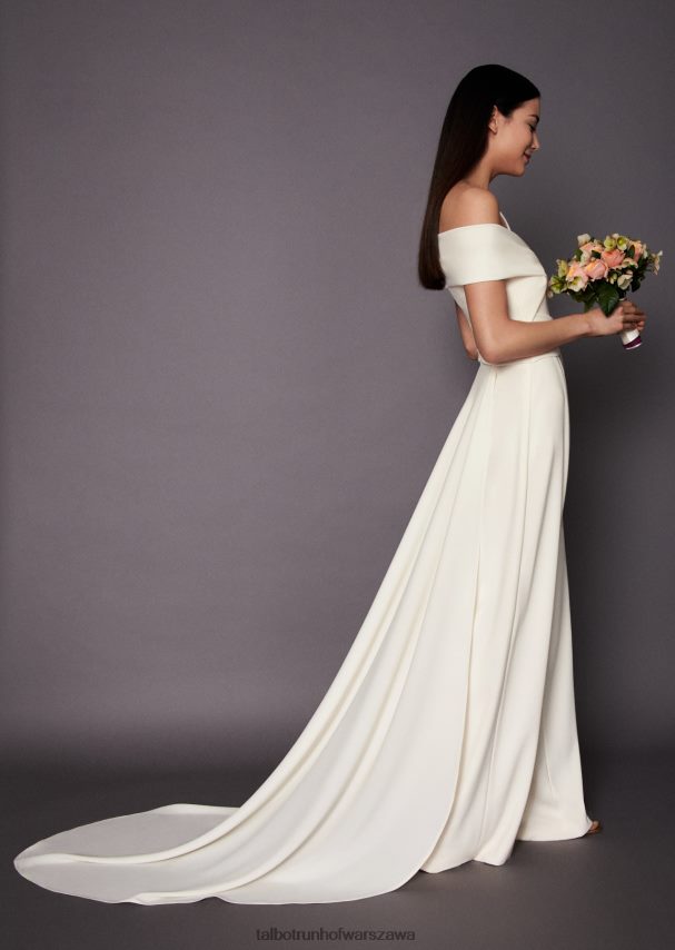 nasz kombinezon Risk7 oznacza wolny od ryzyka, nowoczesny i świeży wygląd w dniu ślubu. Inteligentna draperia pozwala oszukać drogę do idealnej ślubnej sylwetki, nawet jeśli w ciągu dnia masz jeszcze kilka problematycznych stref. materiał, miękka krepa triacetatowa, szczególnie pięknie się układa i układa. ten strój bez wysiłku zachwyca i zaskakuje swoją wszechstronnością. Kombinezon z pięknym, płynącym trenem można oczywiście założyć do kościoła, a potem wystarczy go zdjąć i rozpiąć. obwódka guzika jest następnie zakryta przez sprytnie skonstruowane drapowanie; abyś mógł cieszyć się imprezą na szpilkach do wczesnych godzin porannych w gronie całej rodziny i co najważniejsze bez zmartwień na świecie.