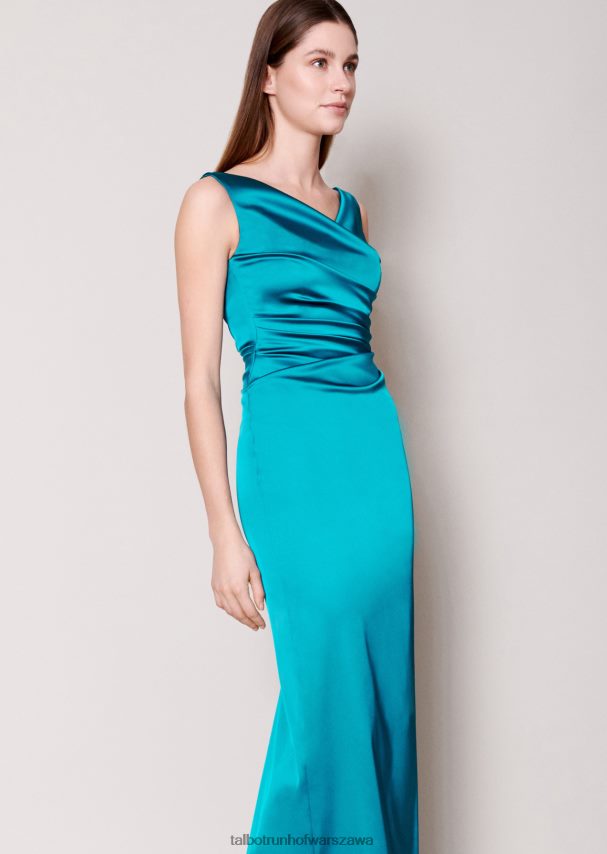 czy słyszysz ciche pluskanie fal i zapach słońca, piasku i soli w powietrzu cóż, z naszą suknią wieczorową Komoe2, klasyką Talbot Runhof, możesz to zrobić; ponieważ w tym kolorze zapewnia nieskończoną ilość wakacyjnego nastroju. jasny turkus zatokowy doda Twojej cerze blasku, sprawiając wrażenie, jakbyś właśnie wróciła z wakacji nad morzem. połyskująca, rozciągliwa satynowa księżna miękko otula figurę i dzięki zastosowaniu wyrafinowanych drapowań stawia wszystko w najlepszym świetle; zwężająca talię i rozciągająca sylwetkę poprzez wąski krój, a niezbyt głęboki dekolt V podkreśla piękny dekolt. noś tę sukienkę z okazałym naszyjnikiem na uroczystą kolację, następny festiwal lub jako wszechstronna kreacja na dowolnym wydarzeniu na czerwonym dywanie.