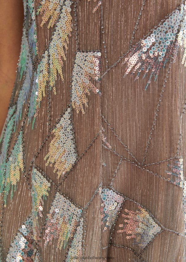 ta sukienka koktajlowa to zupełnie nowe, nowoczesne podejście do blasku lat dwudziestych. pożyczyliśmy luźny fason sukienki z klapami. zamiast frędzli, ten element ma szeroką falbankę, która ułatwia wykonywanie charlestona i innych żywych kroków na parkiecie. subtelny okrągły dekolt nadaje tkaninie – misternie haftowanemu cekinowemu tiulowi – przestrzeń, aby zrobić wrażenie. uzupełnij stylizację metalicznymi sandałami i świetną kopertówką na imprezę, jak w szalonych latach dwudziestych.