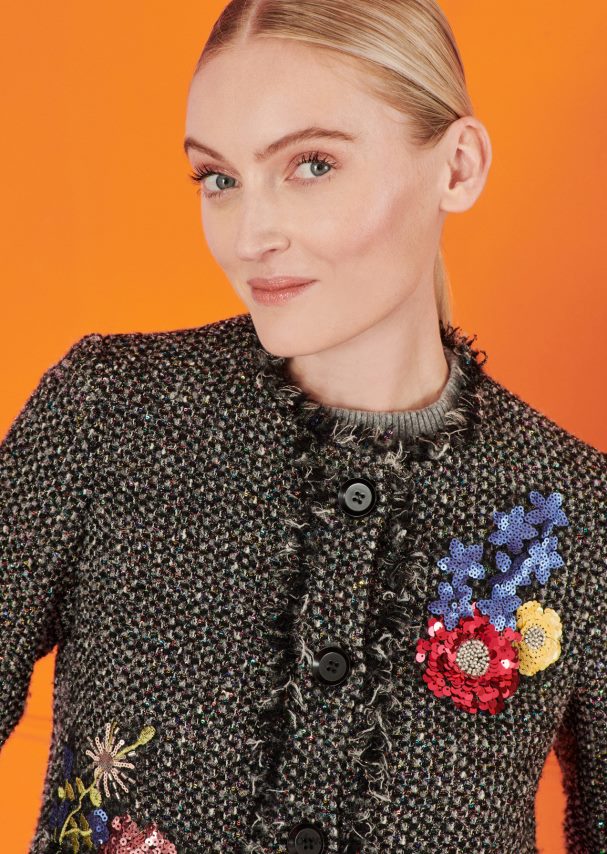 Klasyczna tweedowa marynarka jest w tym sezonie pełna blasku. ten model bez klap wykończyliśmy pięknym tweedem, który dzięki zintegrowanym lureksowym nitkom wspaniale się mieni. z naszywanymi kieszeniami i detalami z frędzlami, nawiązuje się tutaj do historii mody tweedowej marynarki. noś ten przedmiot jako wyrazisty element swobodnego wyglądu z dżinsami lub dopasowaną sukienką, aby stworzyć niezwykle elegancki strój. ma idealny wygląd na wycieczkę do Paryża, wyścigi w królewskim Ascot lub po prostu nadchodzące przyjęcie rodzinne.