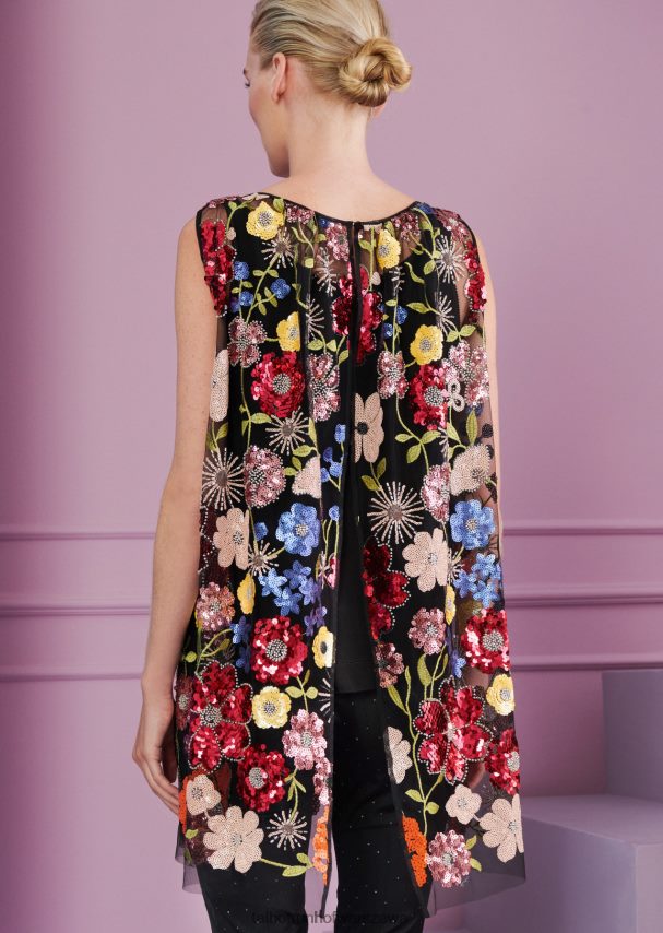 ten top obiecuje przekształcić każdą stylizację w strój couture! wykonany z efektownego, błyszczącego haftu cekinowego, udrapowaliśmy nasz top bez rękawów w obszerną, lejącą tunikę o linii A. nosić jako wyrazisty dodatek do prostych spodni. lub zestaw ze spódnicą do kolan, a nawet załóż ją na czarną sukienkę koktajlową.