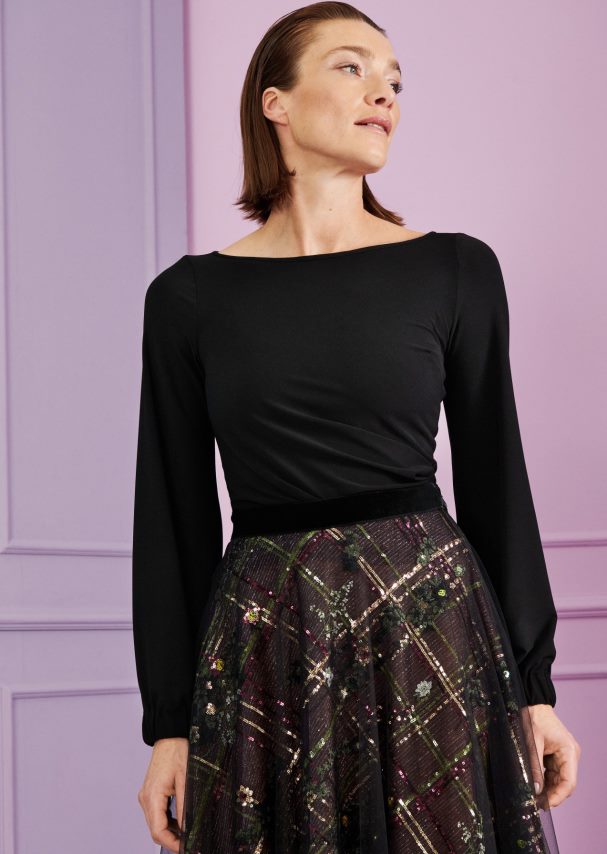 naprawdę nie możesz mieć wystarczająco dużo eleganckich, podstawowych rzeczy w swojej szafie, a nasz top nie jest wyjątkiem. podkreślająca figurę, subtelne drapowania w talii, długie rękawy i piękny dekolt w łódkę. a materiał, nasz ciężki dżersej wiskozowy, dodaje dodatkowej warstwy sportowego blasku. do szerokich spódnic midi, wąskich spodni lub pod satynową marynarkę – na koncercie, na kolacji czy w biurze – z tym topem nie możesz się pomylić.