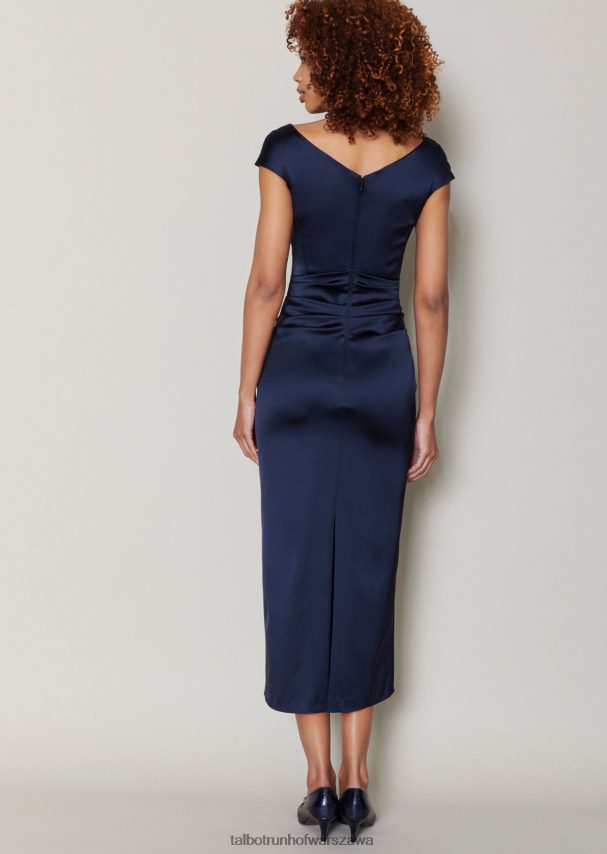 roya1 to klasyk na każdą elegancką imprezę, w której możesz uczestniczyć, a jednocześnie ma modny krój o długości midi. Wykonany z naszego bestsellerowego, wygodnego, rozciągliwego, satynowego materiału księżnej, fałdy tego cudownego materiału w kolorze granatowym Armada pochlebnie przylegają do Twojej sylwetki. połącz ją z delikatnymi czółenkami lub wdzięcznymi sandałami i załóż biżuterię odpowiednią do okazji, czy to przyjęcie biznesowe, uroczystość rodzinna, spotkanie komitetu charytatywnego, czy wyrafinowana kolacja.