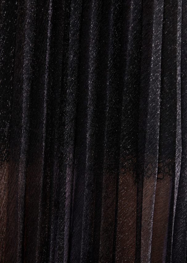ćwiczyliśmy origami! cóż, szczerze mówiąc, robimy więcej plisowania. ale to modne origami oferuje jednak super wygląd. nasza nowa plisowana spódnica wyróżnia się nie tylko małymi zakładkami, stylową długością midi i luźną szerokością, ale także pięknym metalicznym połyskiem wykończyliśmy tę spódnicę midi lekkim jak piórko woalem. to wygląda najpiękniej nocą. ale możesz oczywiście połączyć tę spódnicę ze skórzaną kurtką, aby uzyskać rockową estetykę, lub z lekkim topem i sandałami, aby uzyskać elegancki wygląd.