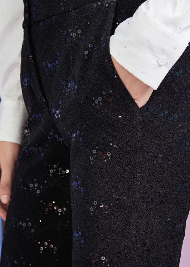 szukasz idealnych spodni nie szukaj dalej... nasze nowe spodnie mają idealne dopasowanie — prosty, wąski krój, marszczenie z przodu/tyłu, przednie kieszenie i zakryte zapięcie na guziki. tutaj wykonaliśmy je z naszej błyszczącej, cekinowej kloszy. połącz z lekkim jedwabnym topem lub pasującą marynarką, aby uzyskać idealny wygląd.