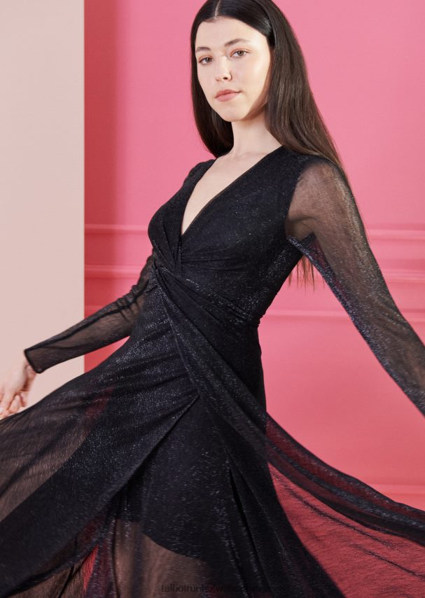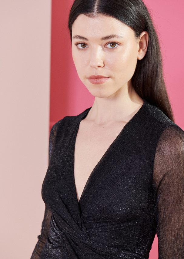 sztuka drapowania w najlepszym wydaniu. być może będziesz musiała przyjrzeć się uważnie, aby docenić piękny i artystyczny krój tej koktajlowej sukienki midi. ale wtedy już zakochasz się w tym numerze bez rękawów z dekoltem w kształcie litery V! tkaniny zostały tutaj sprytnie połączone, co dało ekscytujące detale z przodu. zwężana talia podkreśla figurę. spódnica ma dużą szerokość, a rąbek w kształcie chusteczki naprawdę ożywia tę sukienkę. ta sukienka midi jest wykonana z lekkiego metalicznego woalu. Noś wieczorem na otwarcie wystawy sztuki lub na premierę operową i stylizuj z elegancką kopertówką i szpilkami w kontrastowym kolorze.